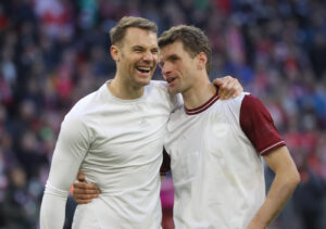 FC Bayern – Augsburg Manuel Neuer und Thomas Müller amüsieren sich nach Spielende München Bayern Deutschland Allianz Ar 27.3.2020 Toimitus Kuva: TT, Sammy Minkoff Kuva: TT, Sammy Minkoff Jaa